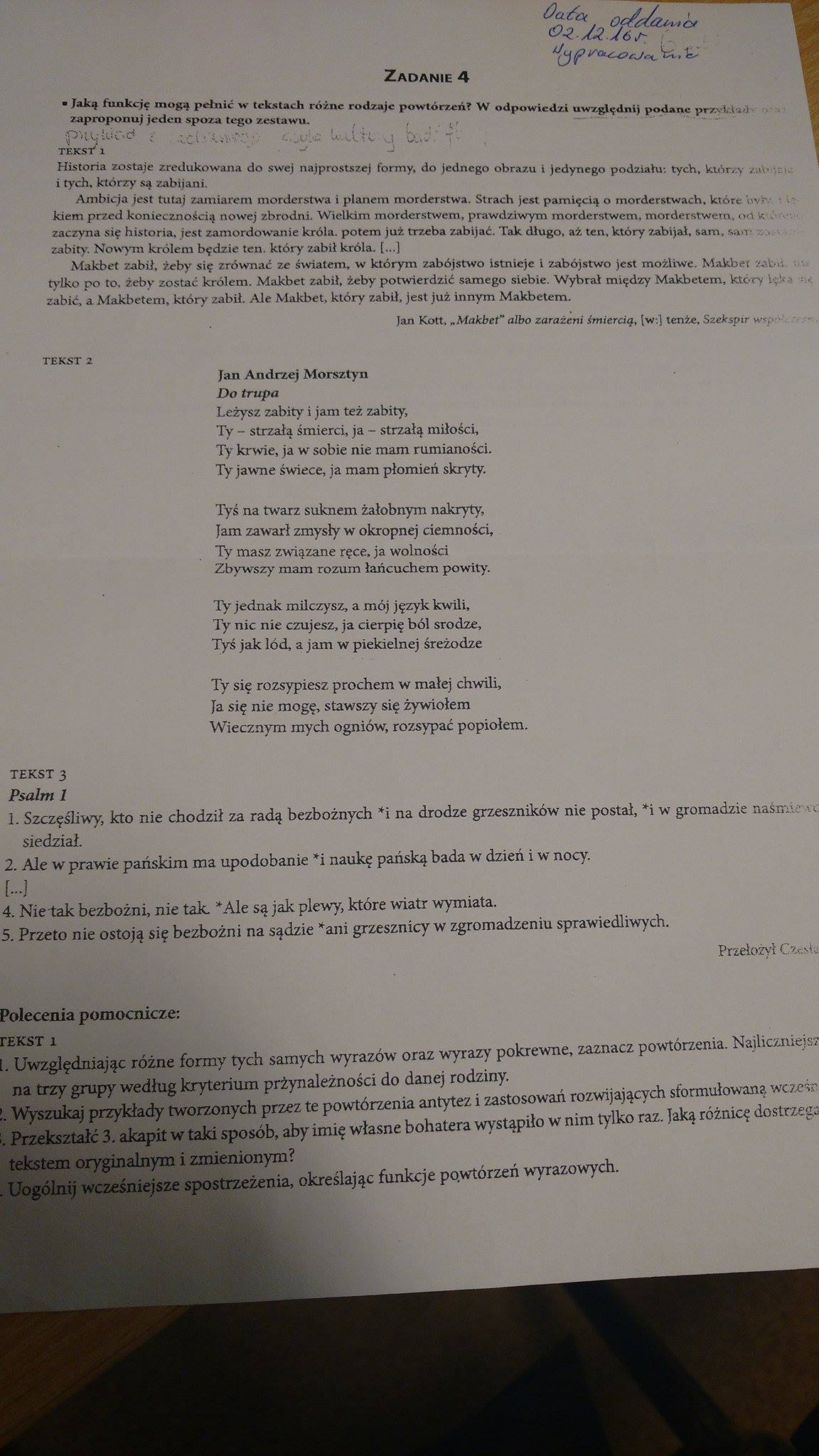 Jaka funkcje mogą pełnić w tekstach rożne rodzaje powtórzeń ? + zdjecia pilne na dzis pomocy :( prosze :(