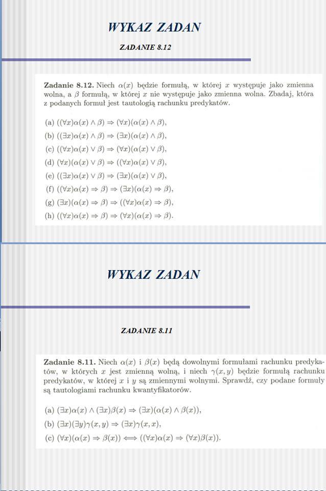 Bardzo proszę o rozwiązanie dwóch zadań z matematyki dyskretnej w tym krótkie wyjaśnienie.Potrzebuje na zaliczenie.Treść znajduje się w załączniku temat:Rachunek predykatów.