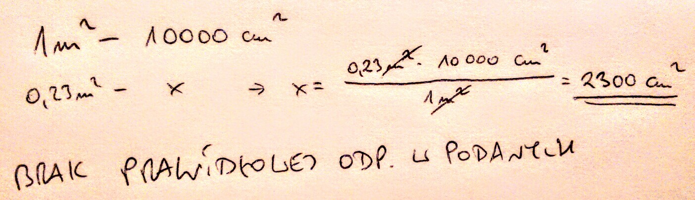 0,23m² jest równe ? a) 23cm² b)0,000023² c)230cm² d)230000cm²