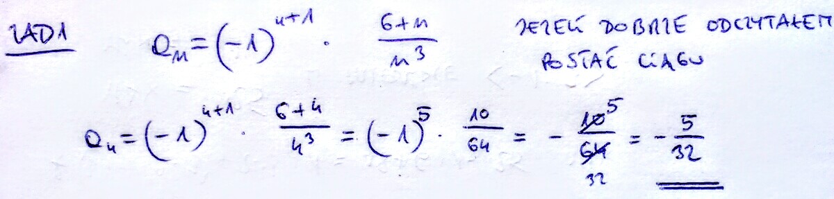 1. Oblicz a4 ciągu określonego wzorem an=(-1) do potęgi n+1 6+n/n do potęgi 3