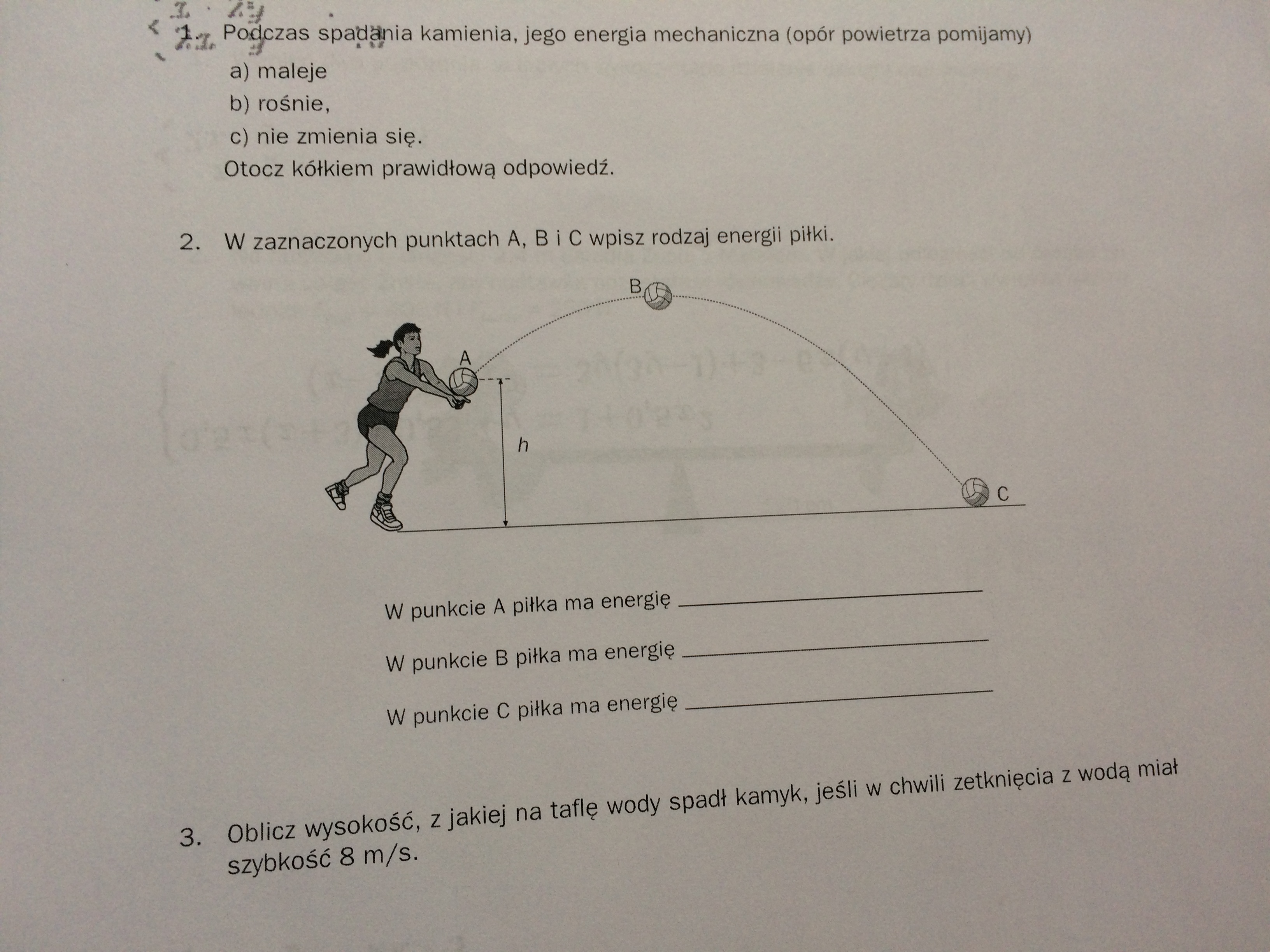 Piłka wznosi się na wysokość h, na której ma energię potencjalną Ep = m g h
