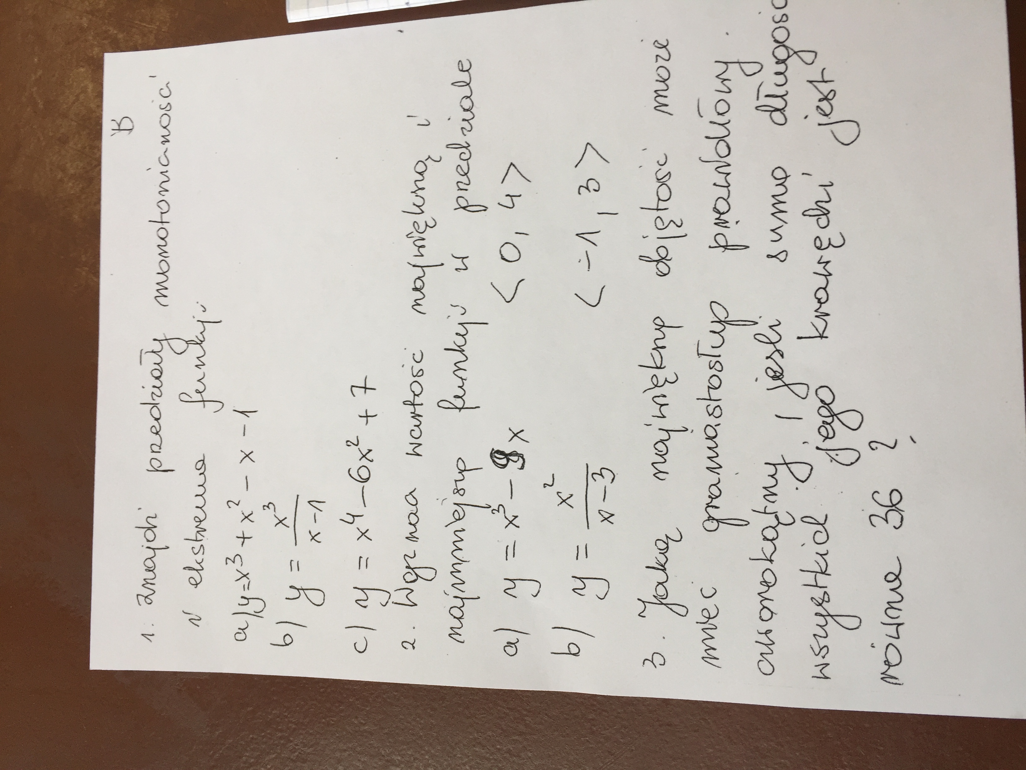 Ekstrema są w punkcie x = 6 ; ale ten punkt nie należy do <-1; 3>
