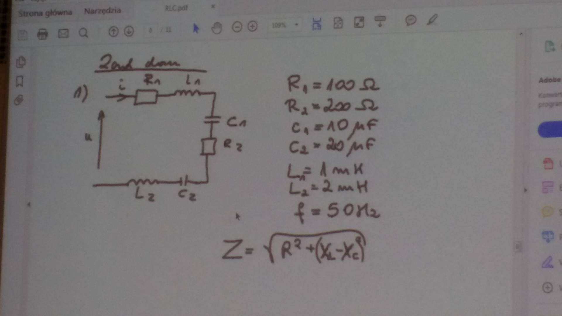 Witam. Niestety nie wiem pod jaka kategorie umiescic te zadanie, poniewaz jest z zadanie scisle zwiazane z elektrotechnika. Chodzi tutaj o obliczenie obwodu RLC o danych umieszczonych w zalaczniku. Bardzo bylbym wdzieczny za kazda odpowiedz naprowadzajaca mnie blizej rozumownia tego przedmiotu poniewa nie ukrywam iz jest to trudny przedmiot. Zadanie najlepiej zrobic od dany ch szukanych i obliczeniach(wzor, podstawienie). Z gory dziekuje.Za pierwsza dobra pomoc daje naj.