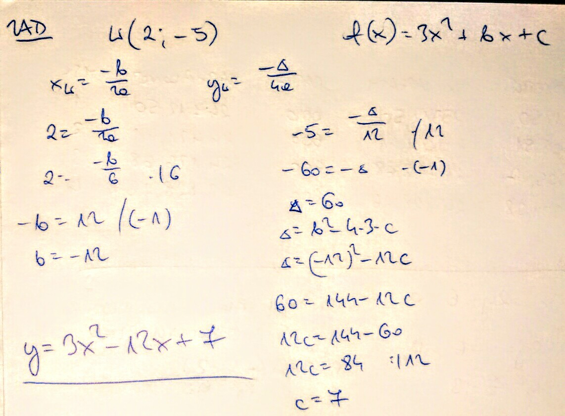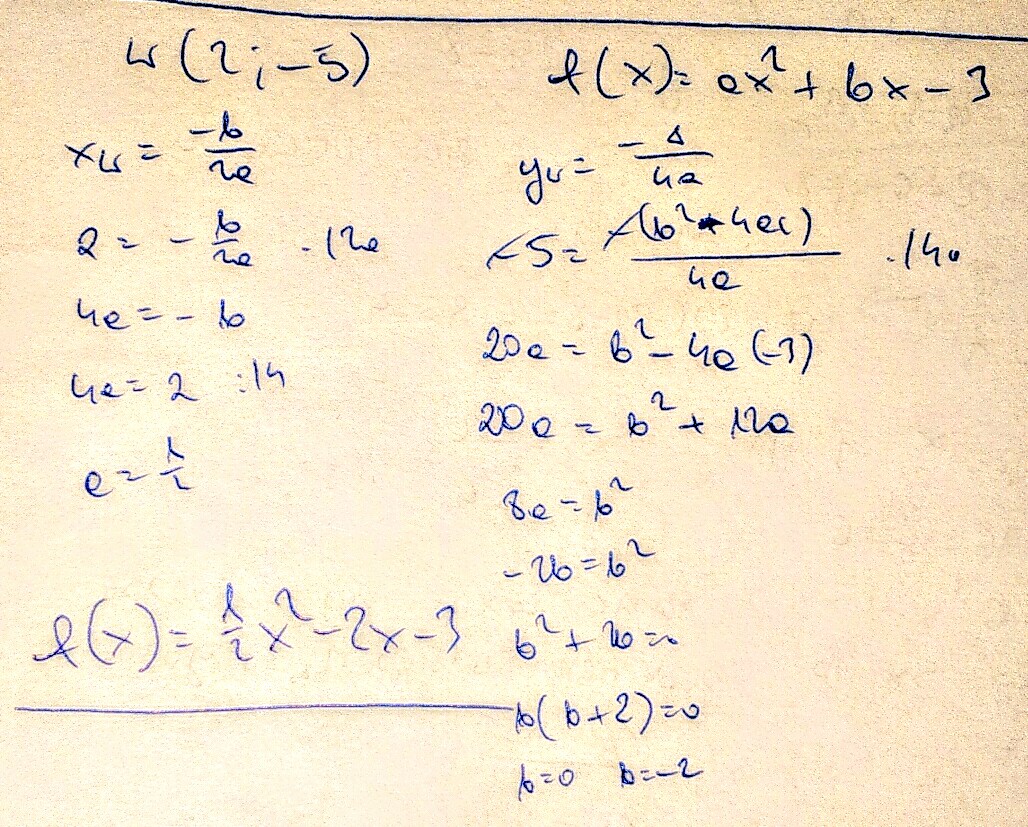 TyDAM NAJ!!! Punkt W(2,-5) jest wierzchołkiem paraboli będącej wykresem funkcji f. Wyznacz brakujące współczynniki i podaj wzór tej funkcji