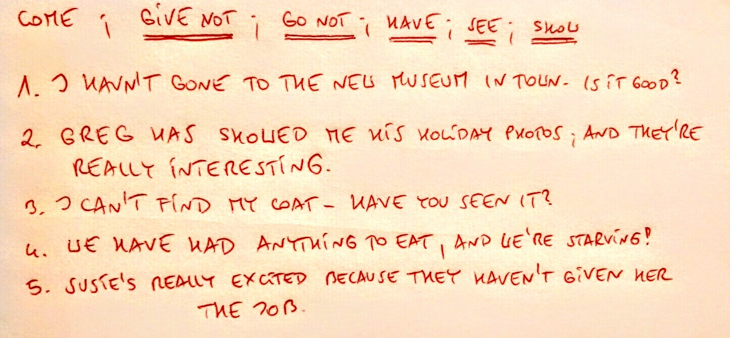 2. Greg _____ me his holiday photos, and they’re really interesting