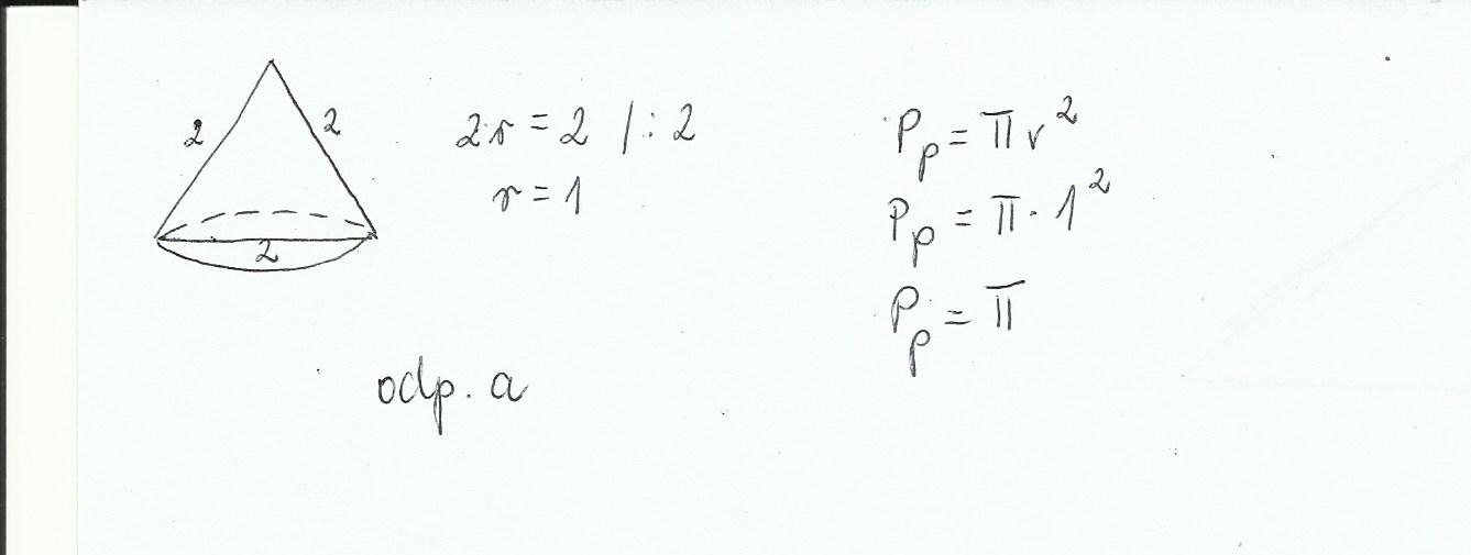 przekrojem osiowym stożka jest trójkat równoboczny którego ok ma długość 2 . Pole podstawy tego stożka jest równe:
