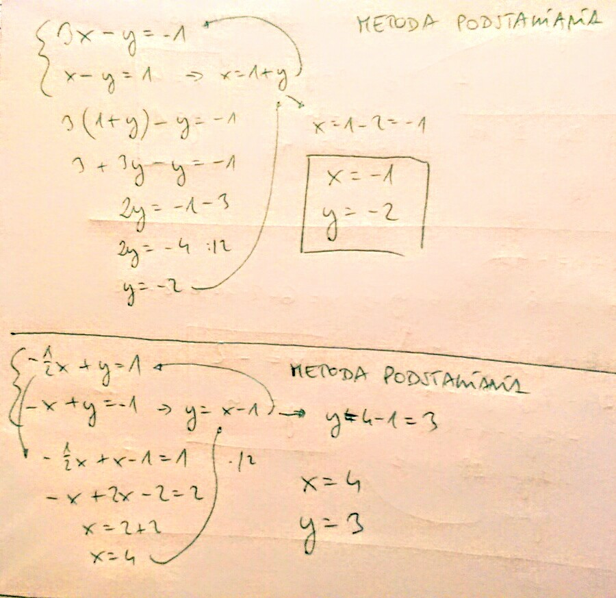 Rozwiąż algebraicznie i graficznie uklady rownan. {3x - y = -1 {x-y =1 kolejny przyklad. {-1/2 x + y =1 {-x+y= -1.Kolejne 4x+y = - 4 {x+2y =6 i ostatnie.{1/2x +y=3 {-1/2x +y= -1