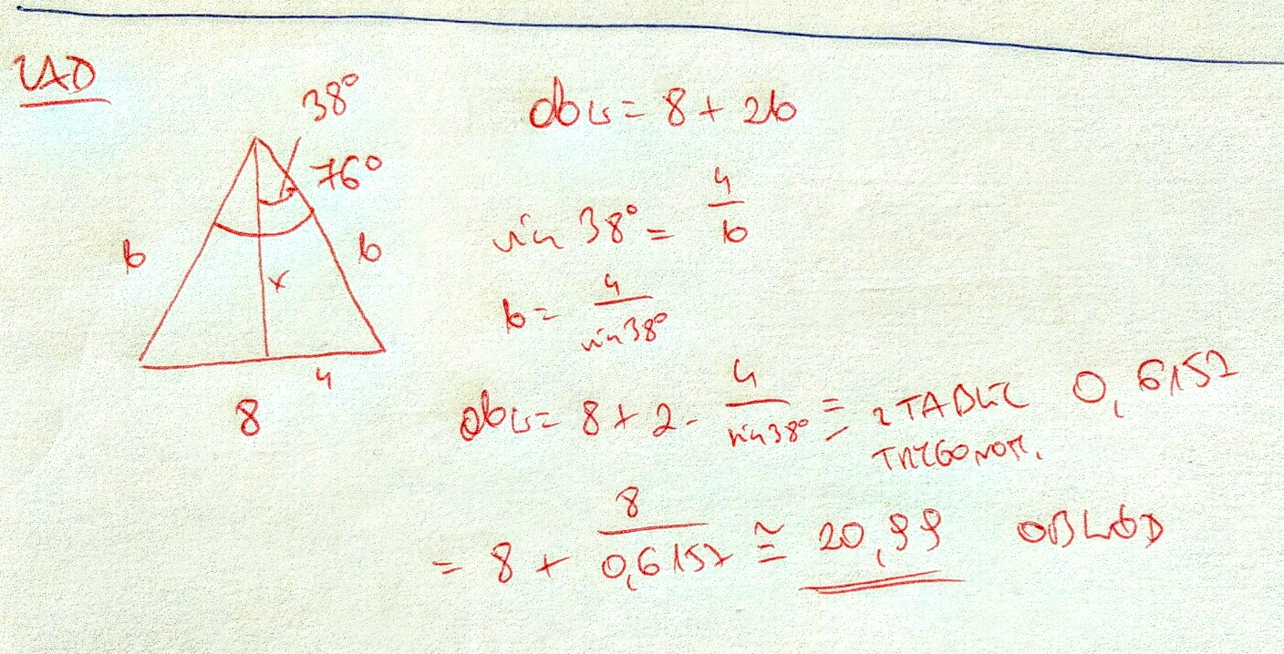 3. podstawa trojkata rownoramiennego ma dlugosc 8 cm a jego ramiona tworzą kąt 76 . oblicz obwod tego trójkata