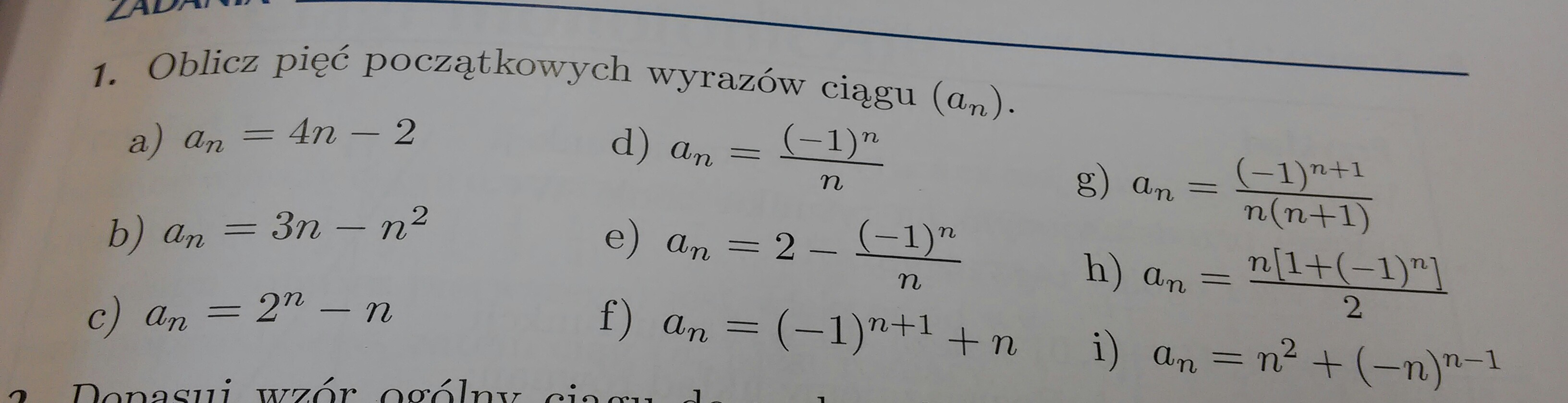 W przykładach zawierających (-1)^n pamiętaj, że -1 do potęgi parzystej daje 1