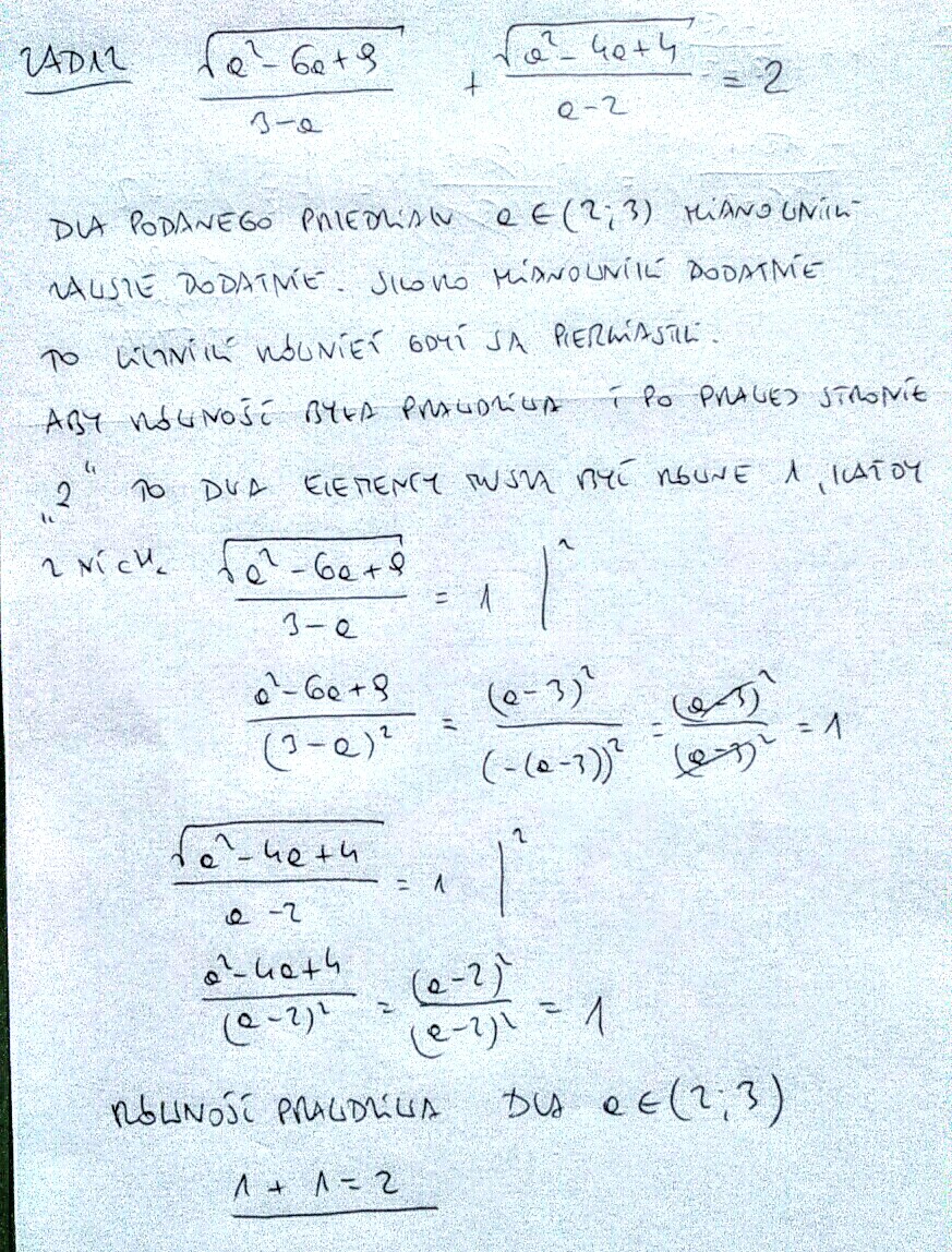 [ pierwiastek [ (a - 2)^2 ] / (a - 2) = | a - 2 | / (a - 2) = 1