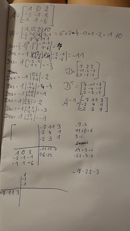 Poprawnie liczysz elementy typu Dij = aij * det (Aij)
