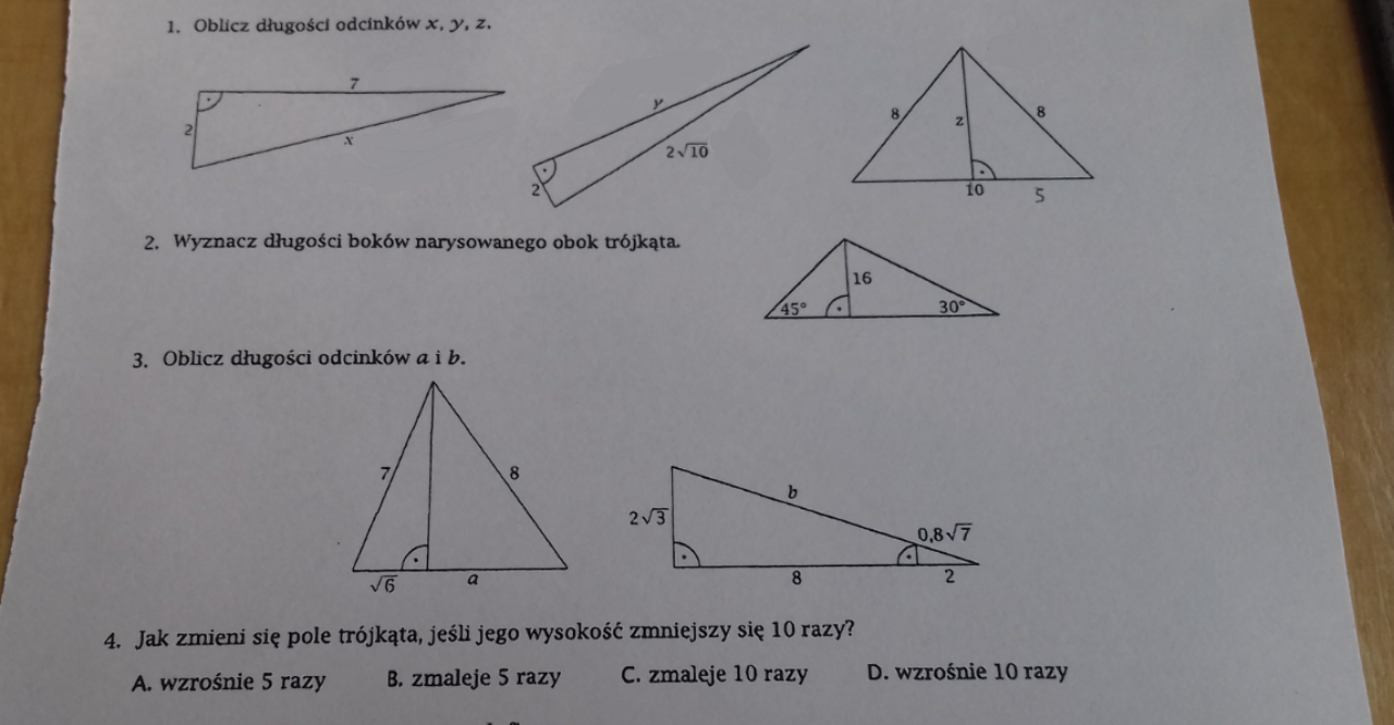 Krótszy odcinek na podstawie trójkąta = 16 (bo jest kąt 45 stopni)