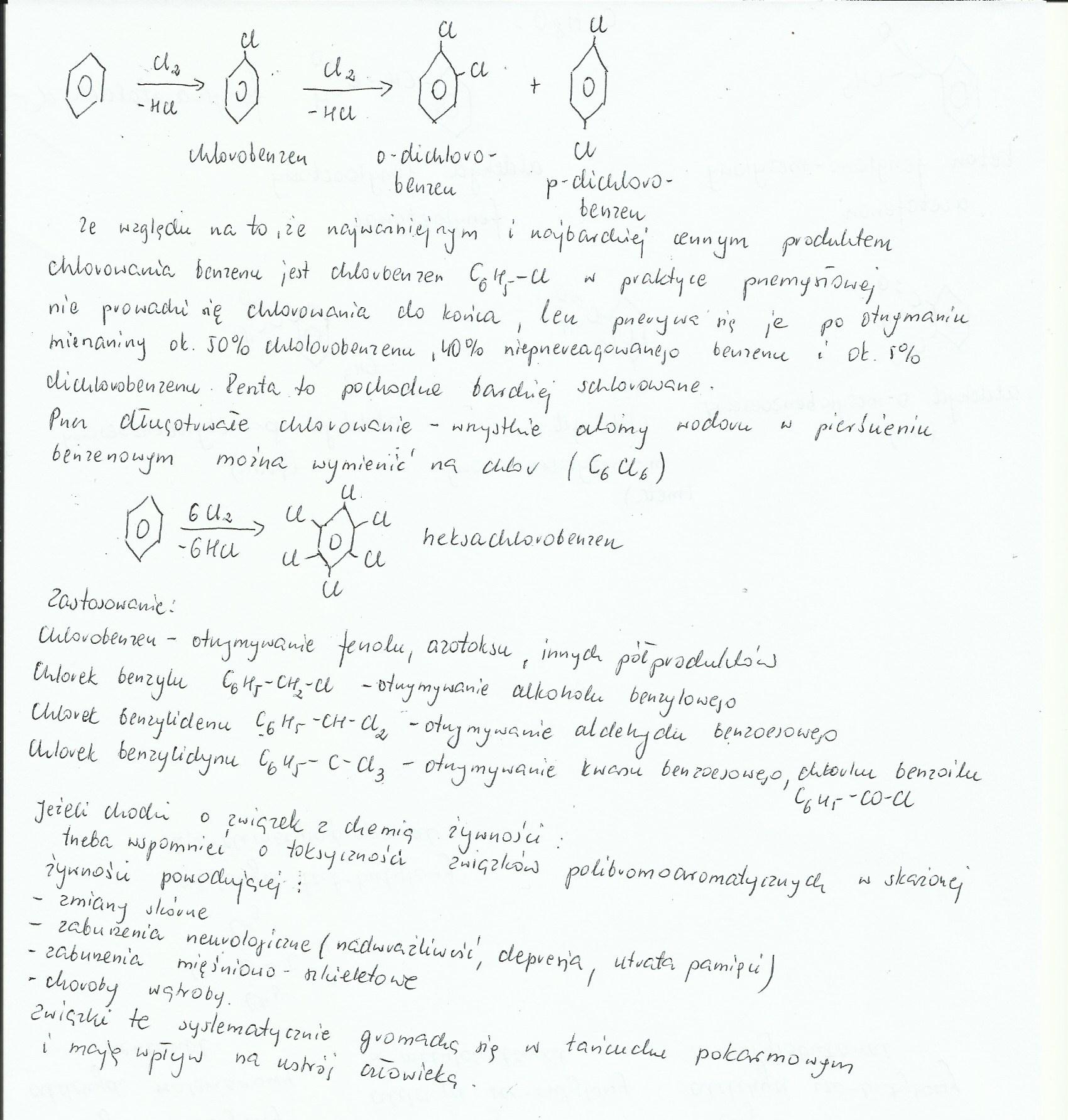 Napisz równania wszystkich etapów chlorowania(bromowania) benzenu. Jakie zastosowanie znajdują produkty chlorowania/bromowania węglowodorów aromatycznych. Czy ma to jakiś związek z chemią żywności/toksykologią żywności?