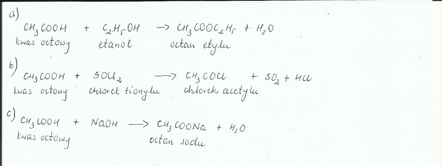 Napisz równania reakcji otrzymywania wymienionych związków wychodząc z kwasu