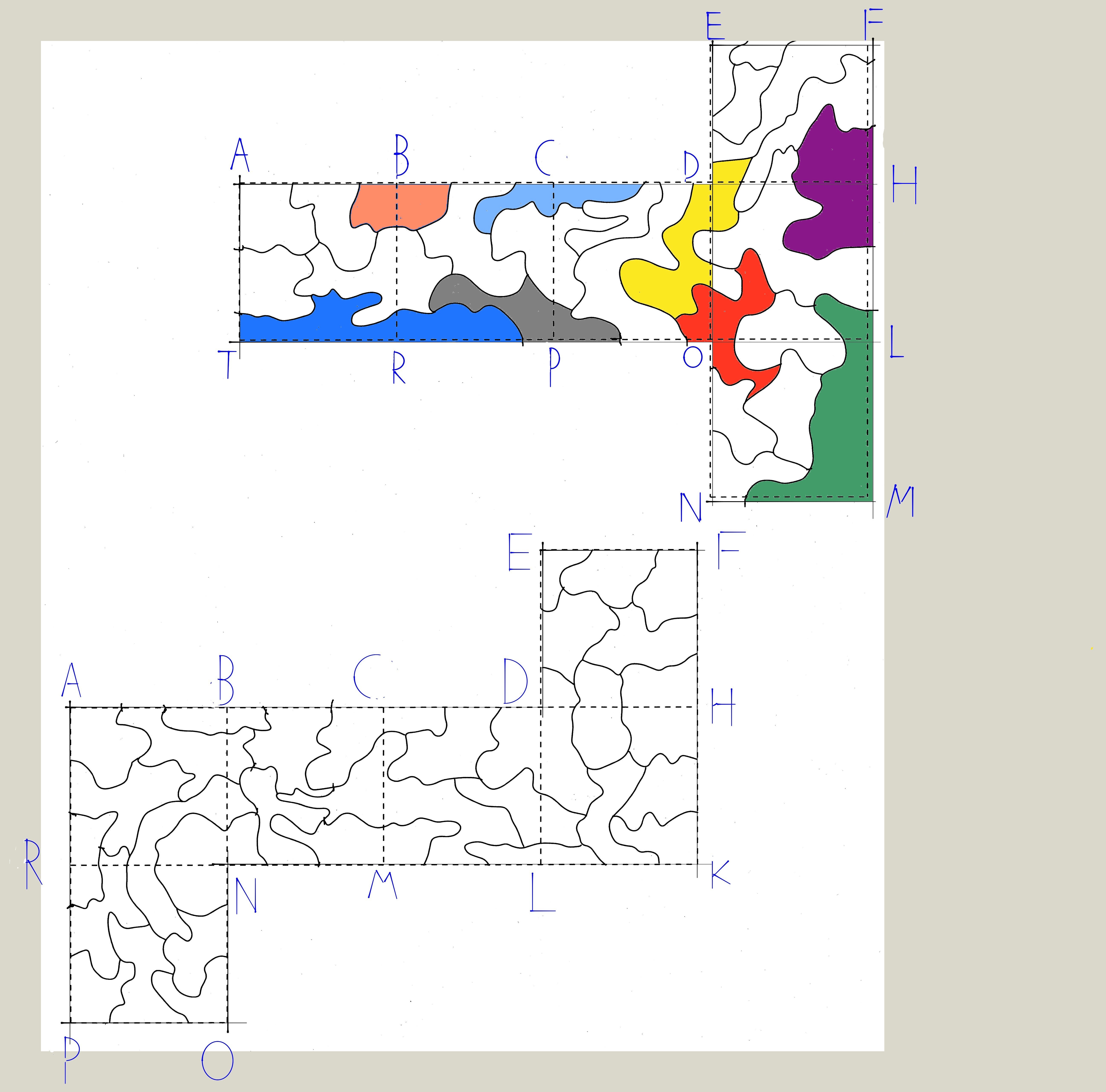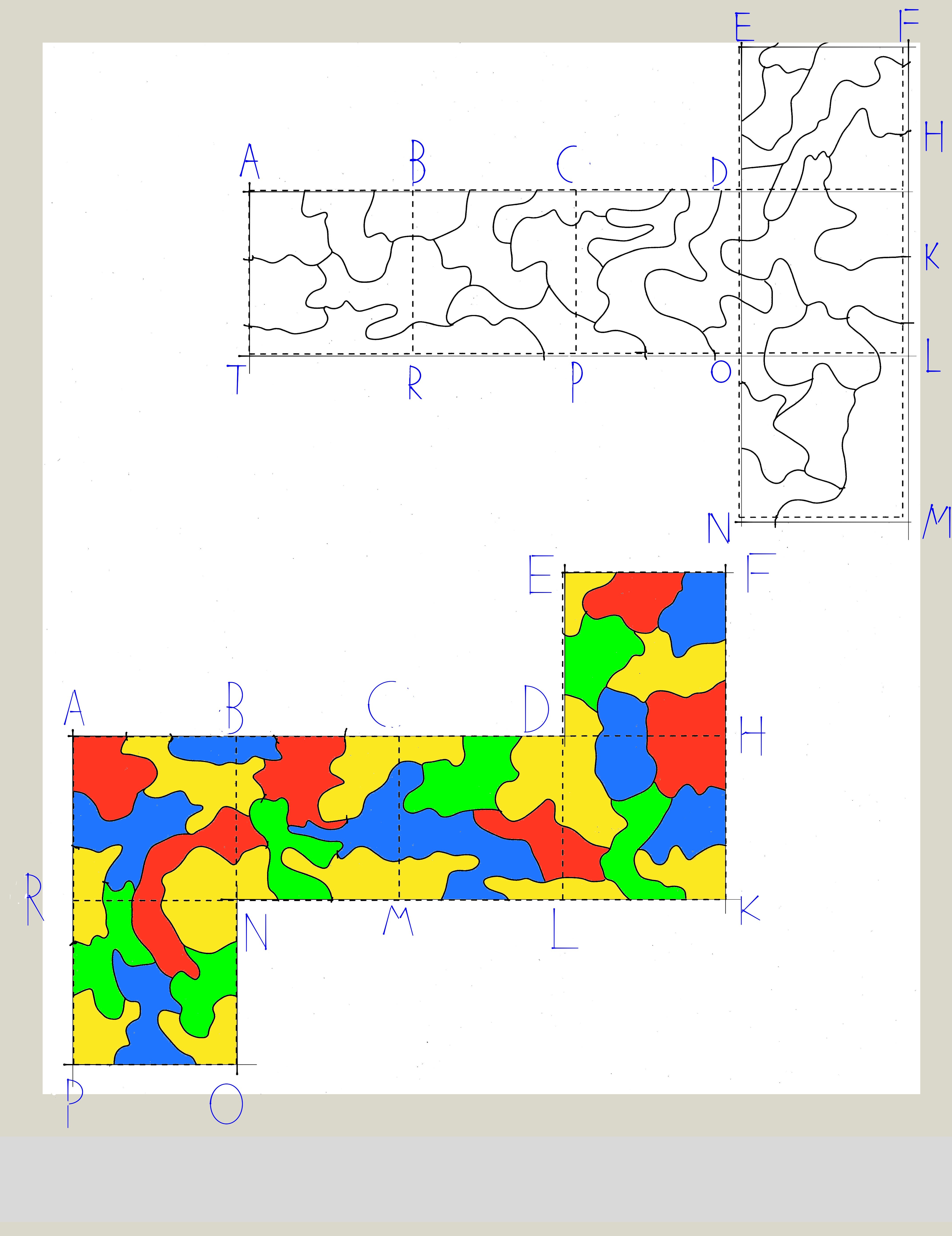 Te sześciany lub czworościany to taki kanciaste "globusy" - po wycięciu i złożeniu "państwo" przechodzi na sąsiednią płaszczyznę - więc musi mieć ten sam kolor.