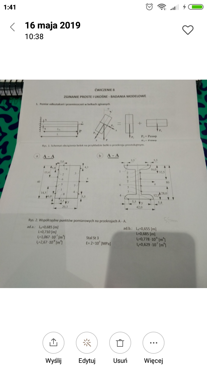 Witam, mógł by mi ktoś narysować wykresy zginania prostego i ukośnego dla belki dwuteowej? Bo nie wiem jak się do tego zabrać, a jest to tematem mojego sprawozdania na wytrzymałość materiałów. Chodzi mniejwiecej o to by dobrać odpowiednie wartości odkształcenia dla danych współrzędnych dwuteownika. Muszę mieć wykres zginania prostego i ukośnego oraz wyznaczone osi obojętne zginania. Obliczenia w sprawozdaniu są poprawne. Byłbym wdzięczny jak ktoś by schematycznie nawet wysłał jakiś wykres aby mnie naprowadzić. Z góry dziękuję