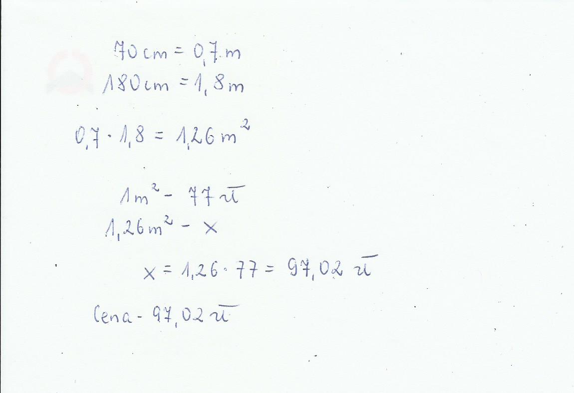 Materiał ma wymiar 70x180 Jaka bedzie cena jeżeli koszt za metr kwadratowy to 77 zł netto?