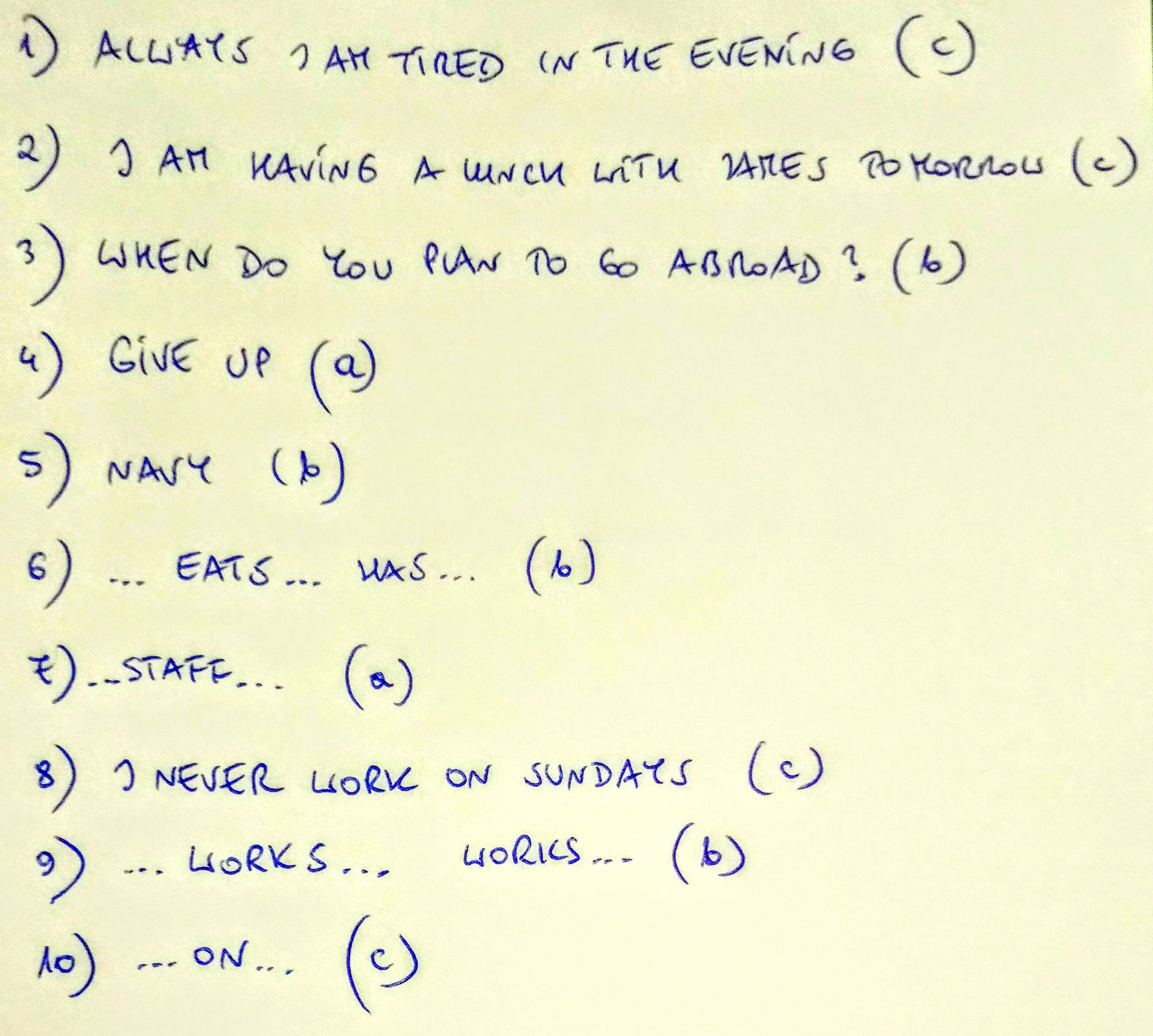 a) I am tired in the evening always