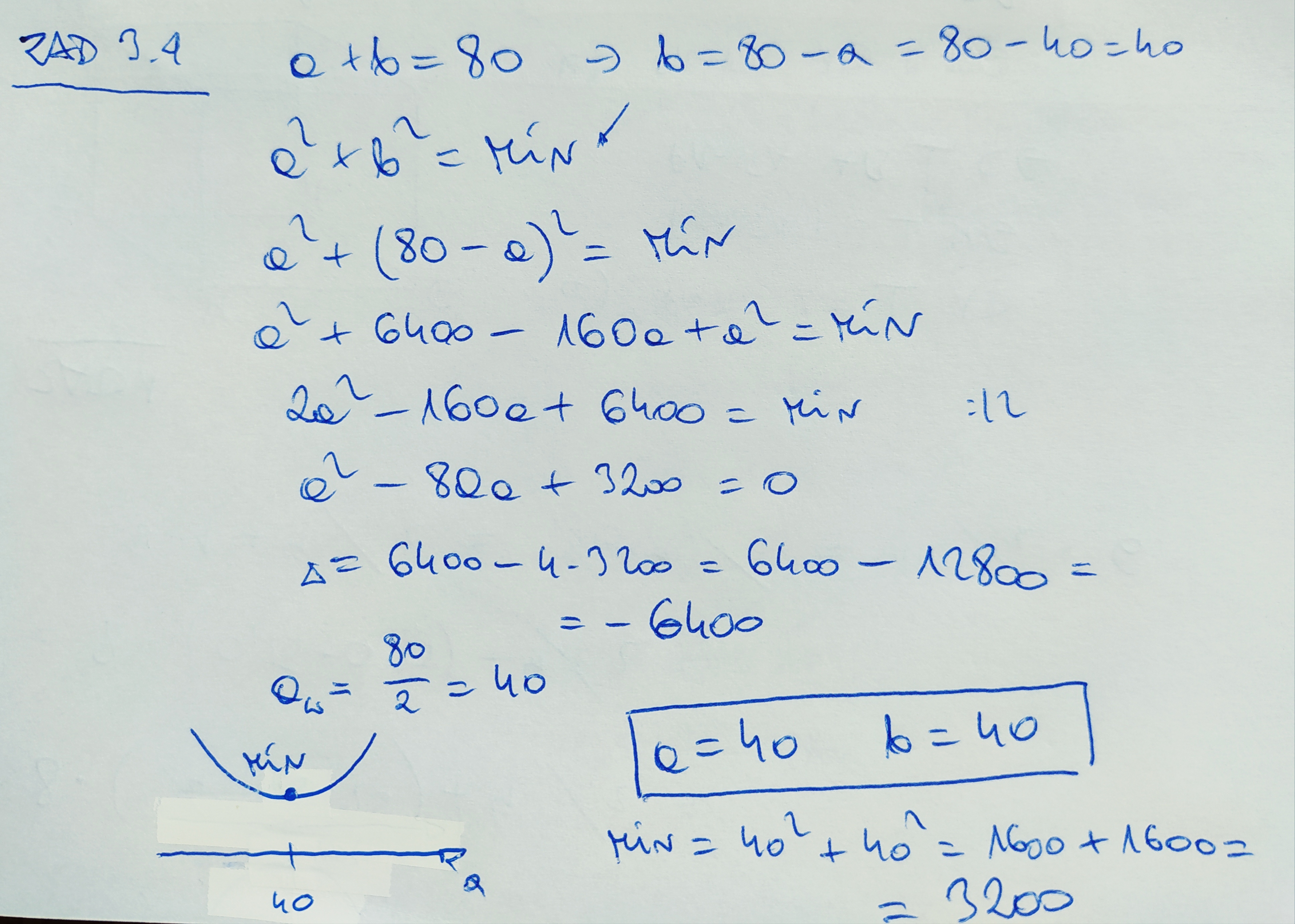 3.4. Liczbę 80 przedstaw w postaci różnicy dwóch liczb, tak aby suma ich kwadratów była najmniejsza.