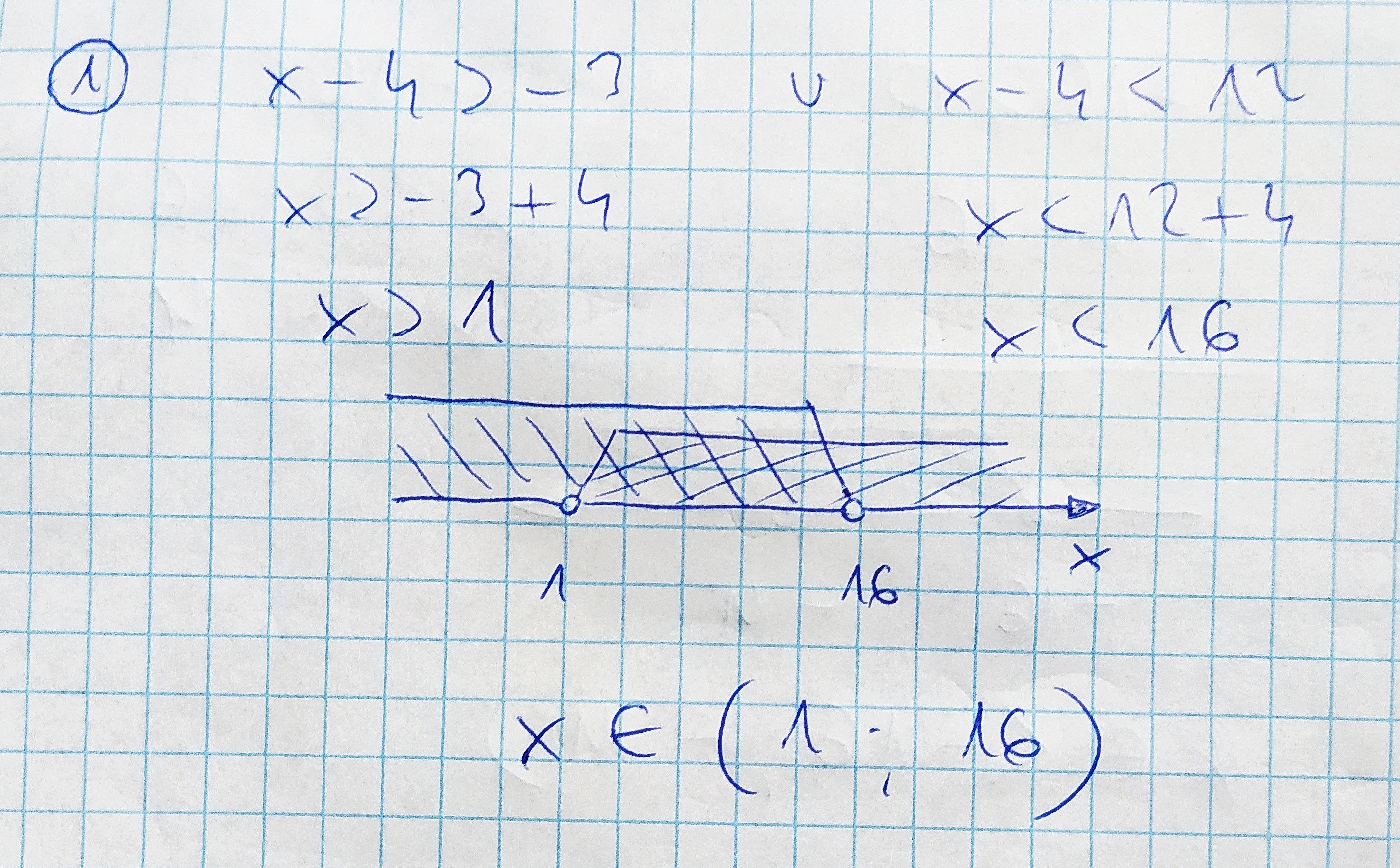 – 3 < x – 4 < 12