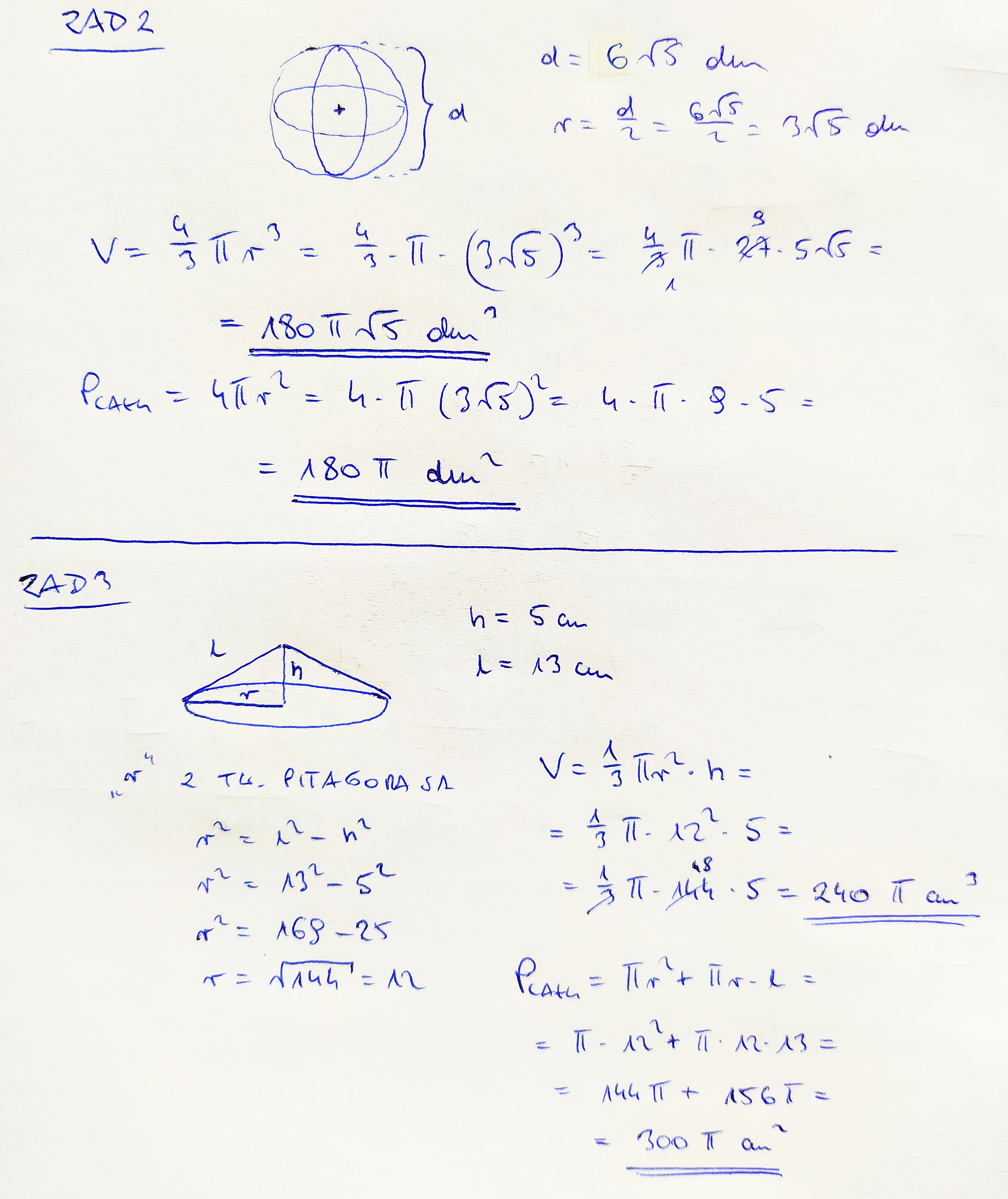 Oblicz pole powierzchni i objętość kuli o średnicy 6 pierwiastek 5dm.