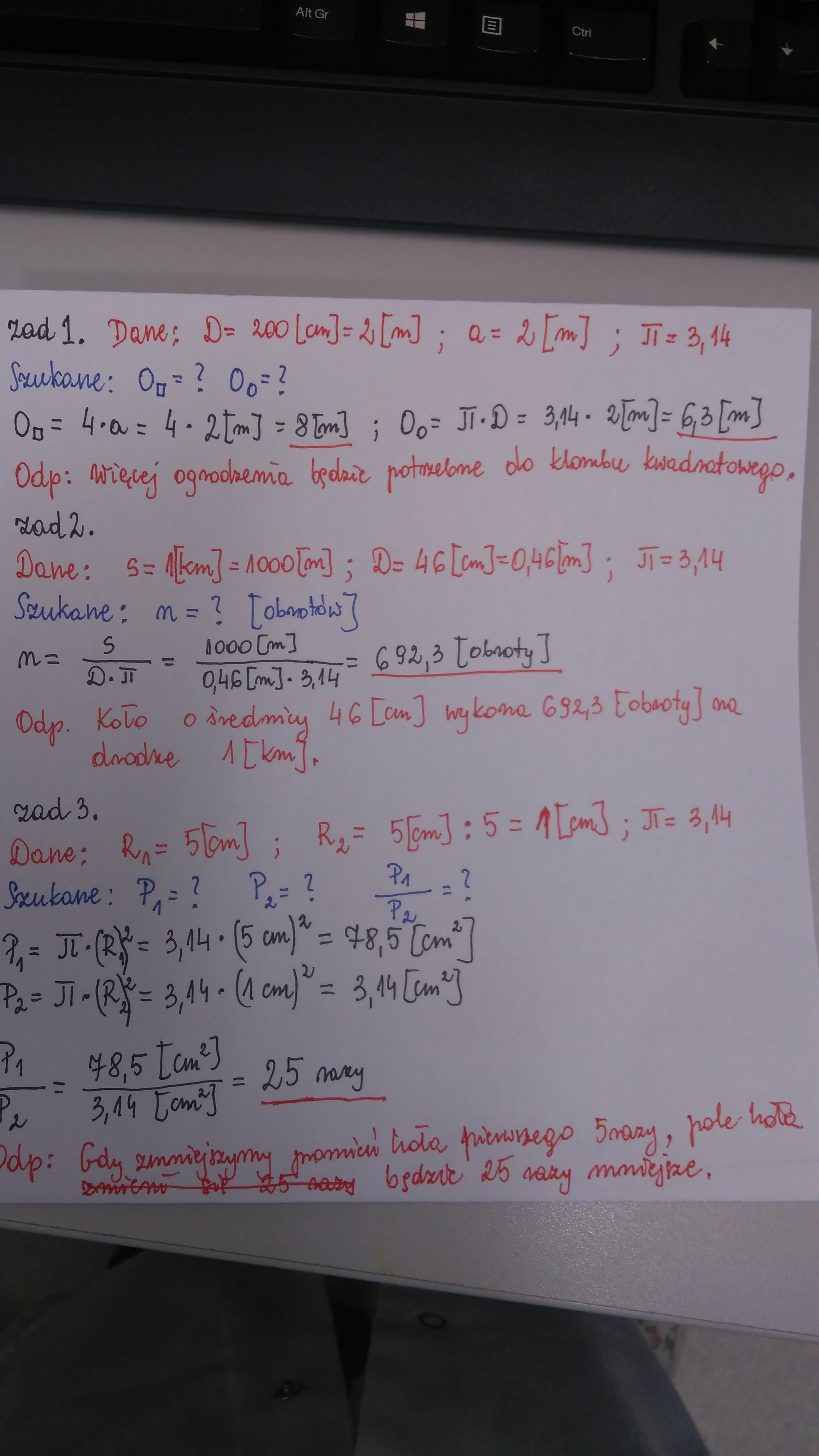Na ogrodzenie którego klombu: w kształcie kwadratu o boku 2m czy w kształcie koła o średnicy 200 cm zużyjemy więcej siatki? Wykonaj potrzebne obliczenia i zapisz odpowiedź.
