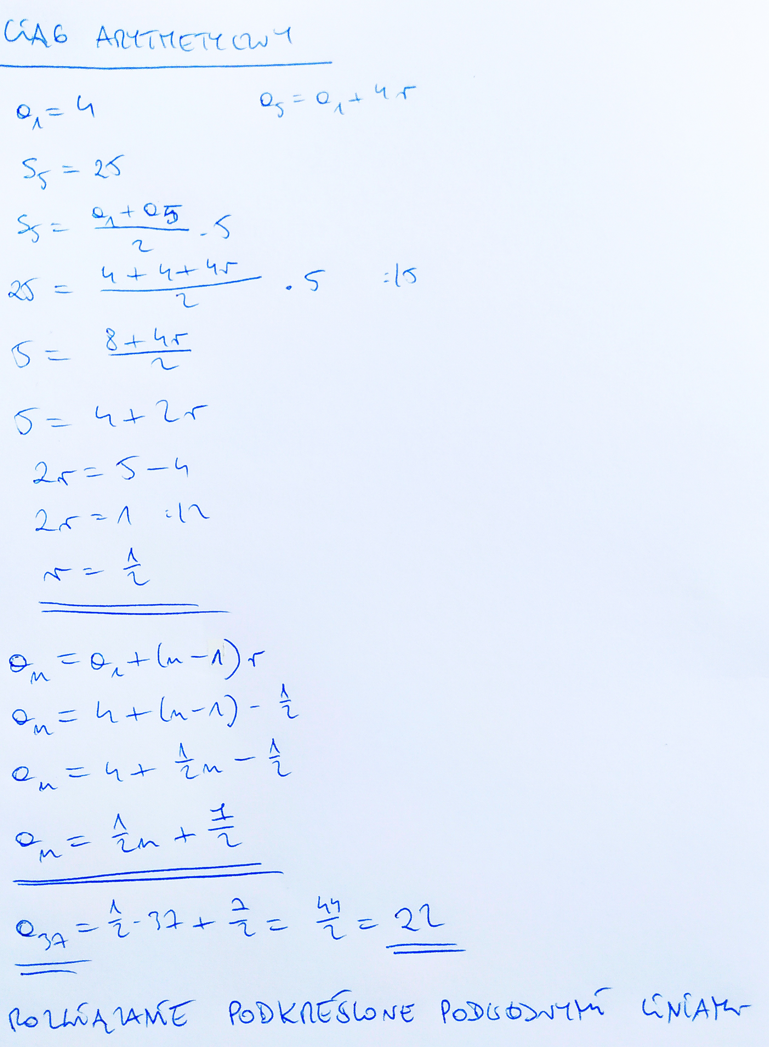 tego ciągu jest równa 25. Oblicz różnicę tego ciągu, zapisz wzór ogólny ciągu oraz oblicz wyraz 37-y