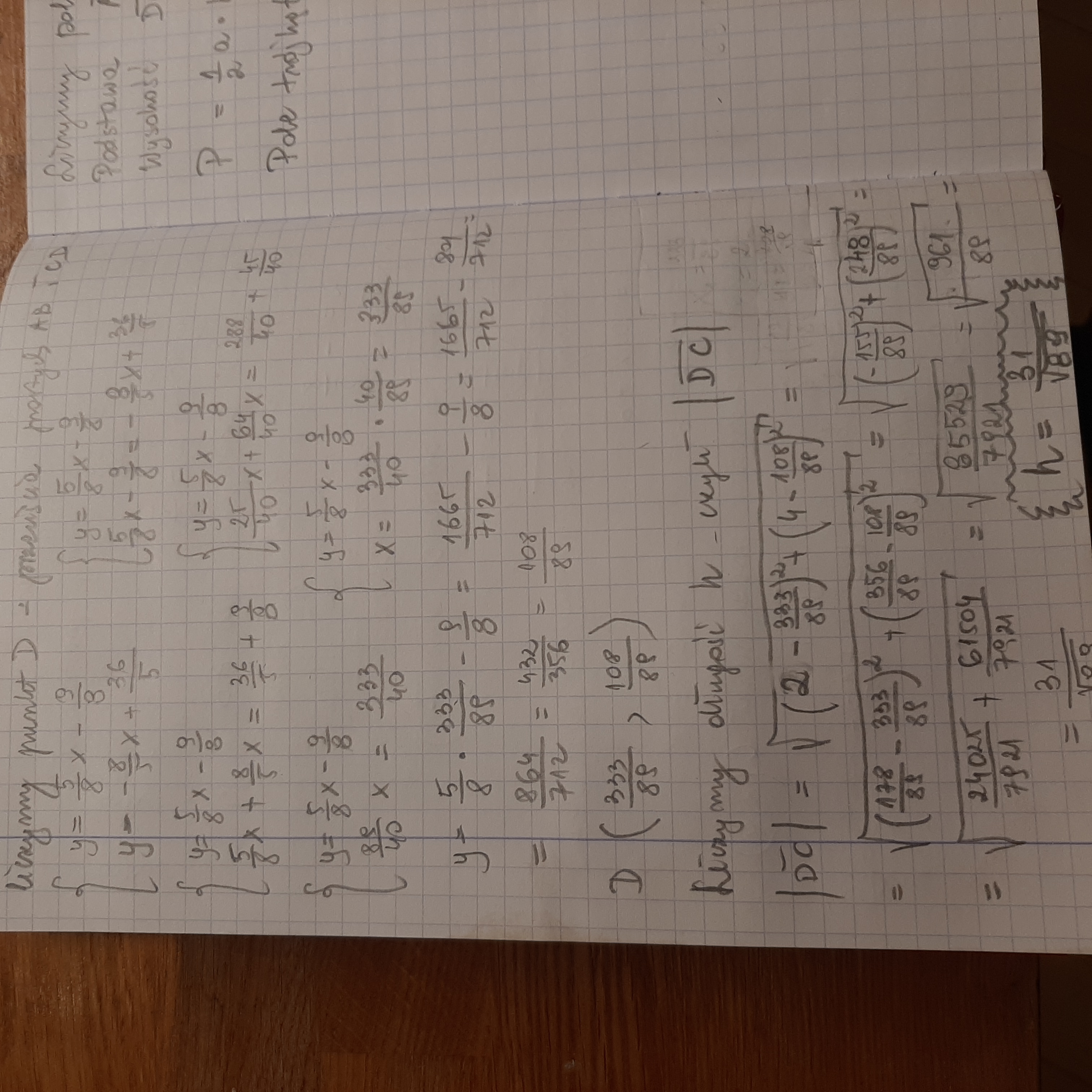 Masz rację. h=(31/89^05)*(89^0,5/89^0,5)=(31*89^0,5)/89.