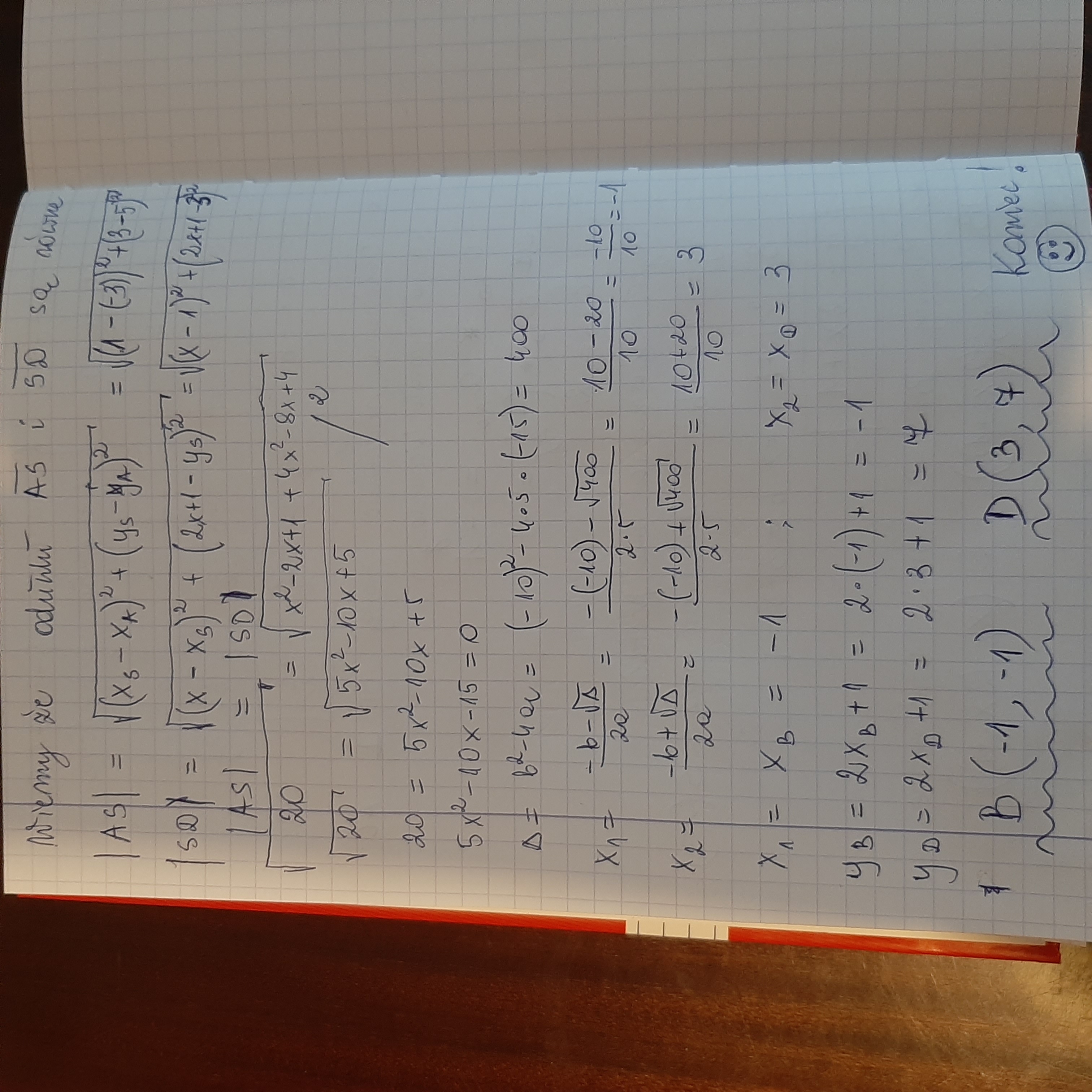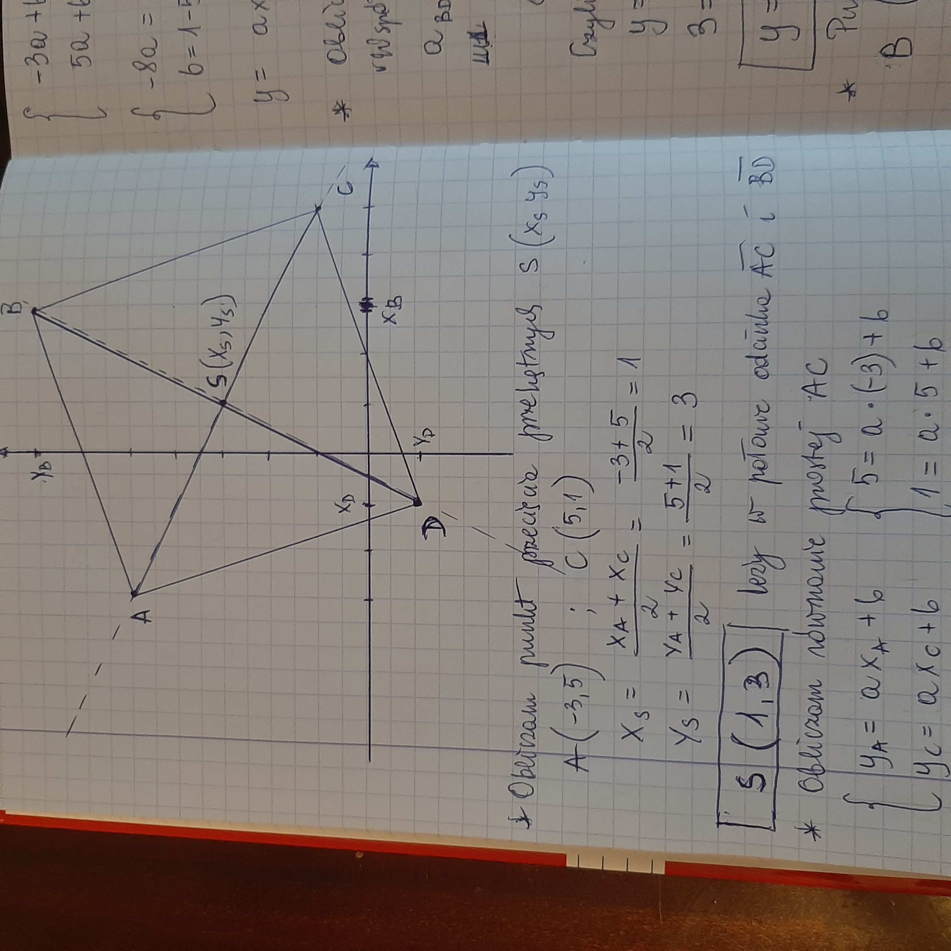 Wyznacz współrzędne wierzchołków B i D czworokąta ABCD, jeśli wiadomo, że: